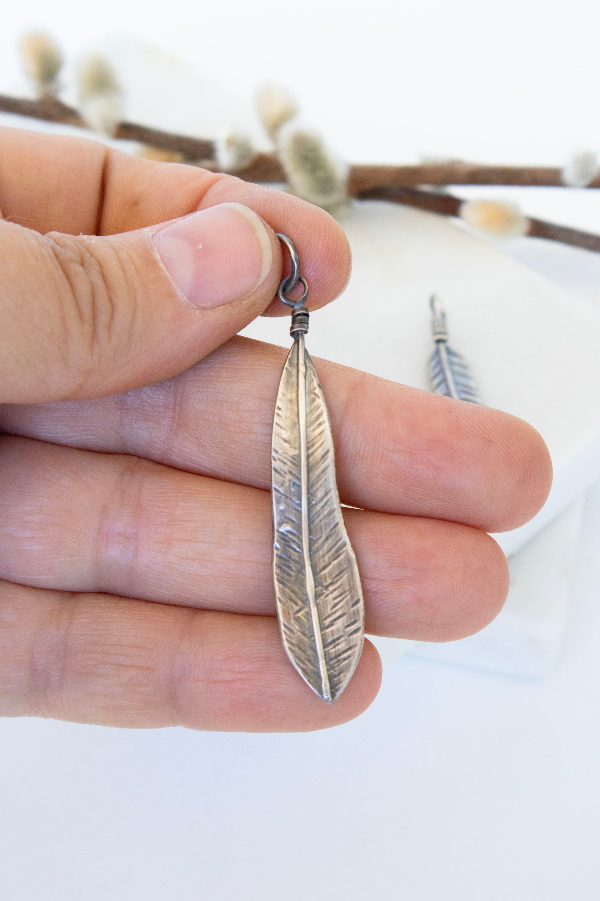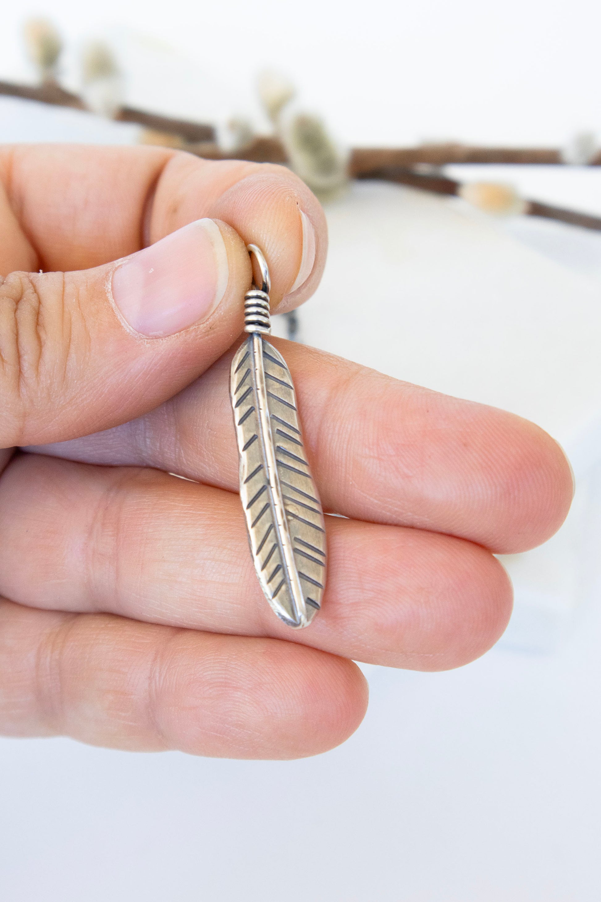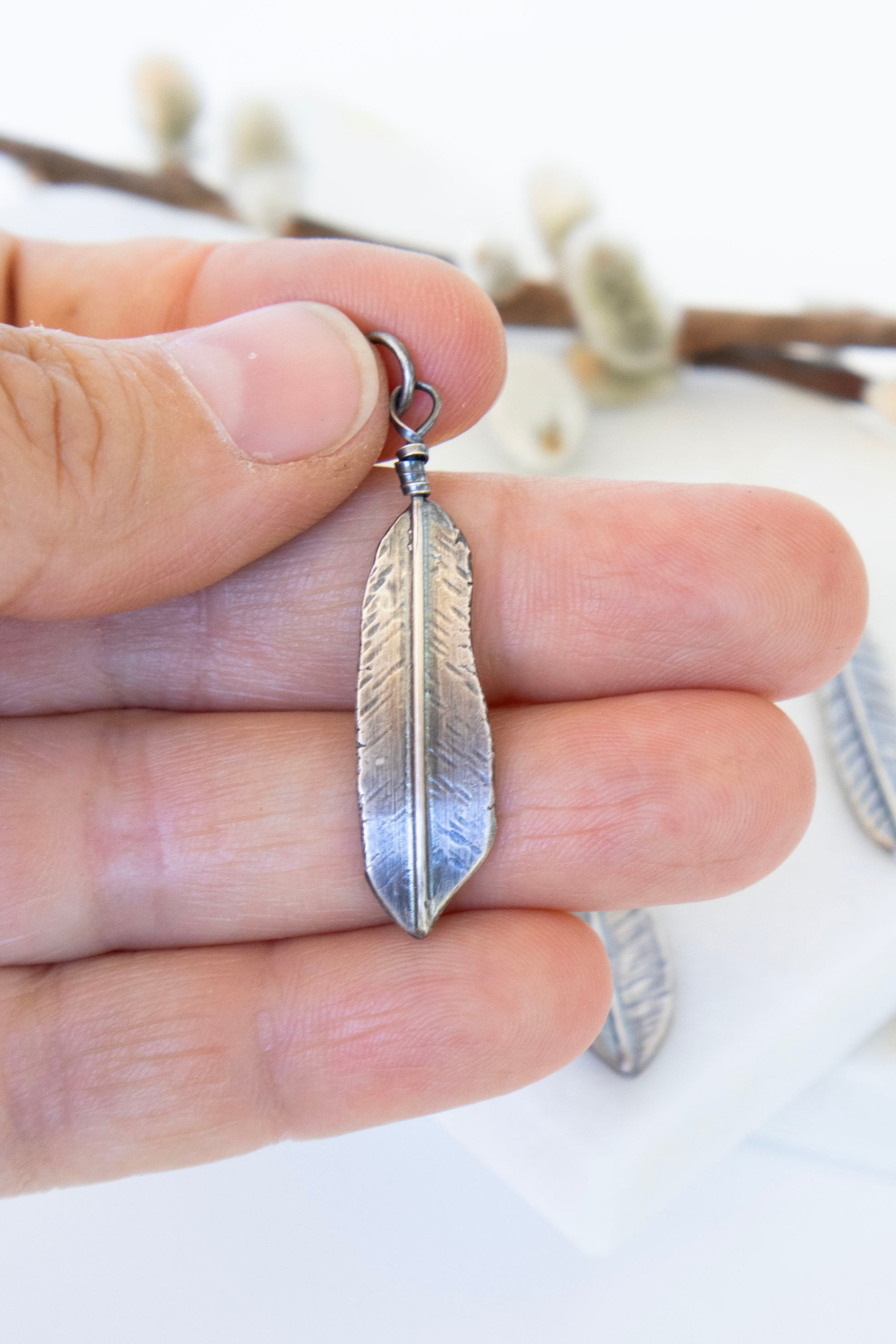 These Feather Charms have each been hand-forged from recycled sterling silver. Each one is slightly different, and one-of-a-kind. These make great pendants by themselves, or charms to add to a story necklace. Please select which charm you would like from the drop down.
